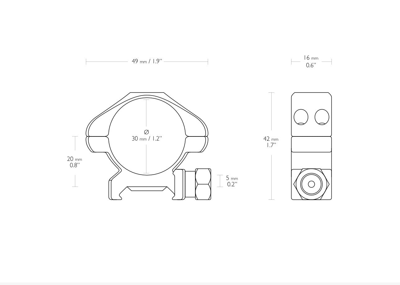 Hawke Precision Steel 30mm 2 Piece Weaver Scope Rings - Hex Nut